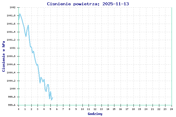Dzisiaj - Minimalna: 1000.4 hPa, Maksymalna: 1001.85 hPa, Średnia: 1001.2 hPa