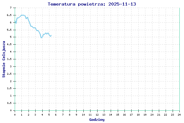 Dzisiaj - Minimalna: 5.44 °C , Maksymalna: 6.5 °C , Średnia: 6.1 °C
