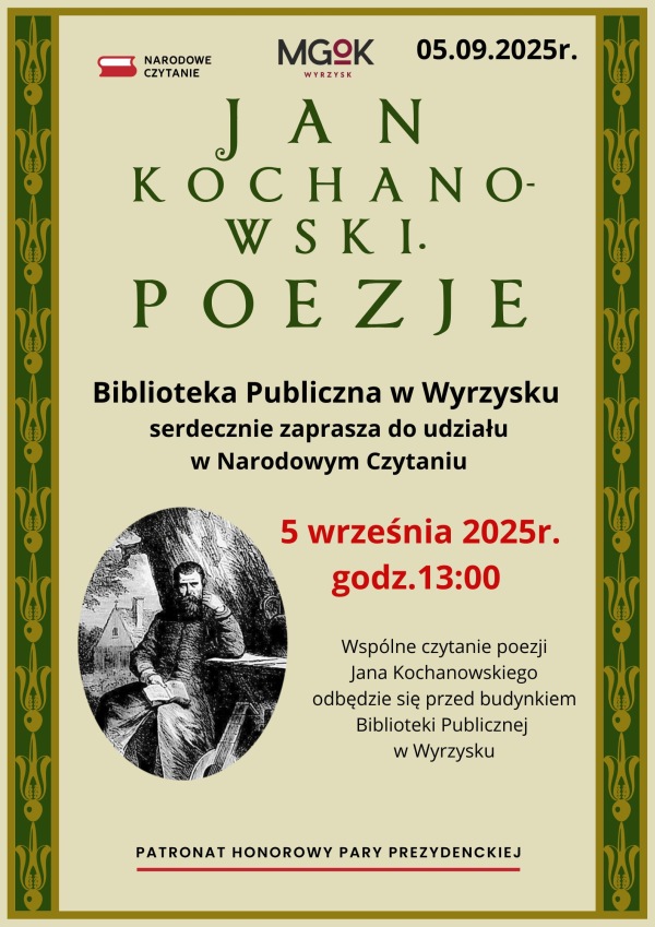 Będzie wspólne czytanie poezji Jana Kochanowskiego