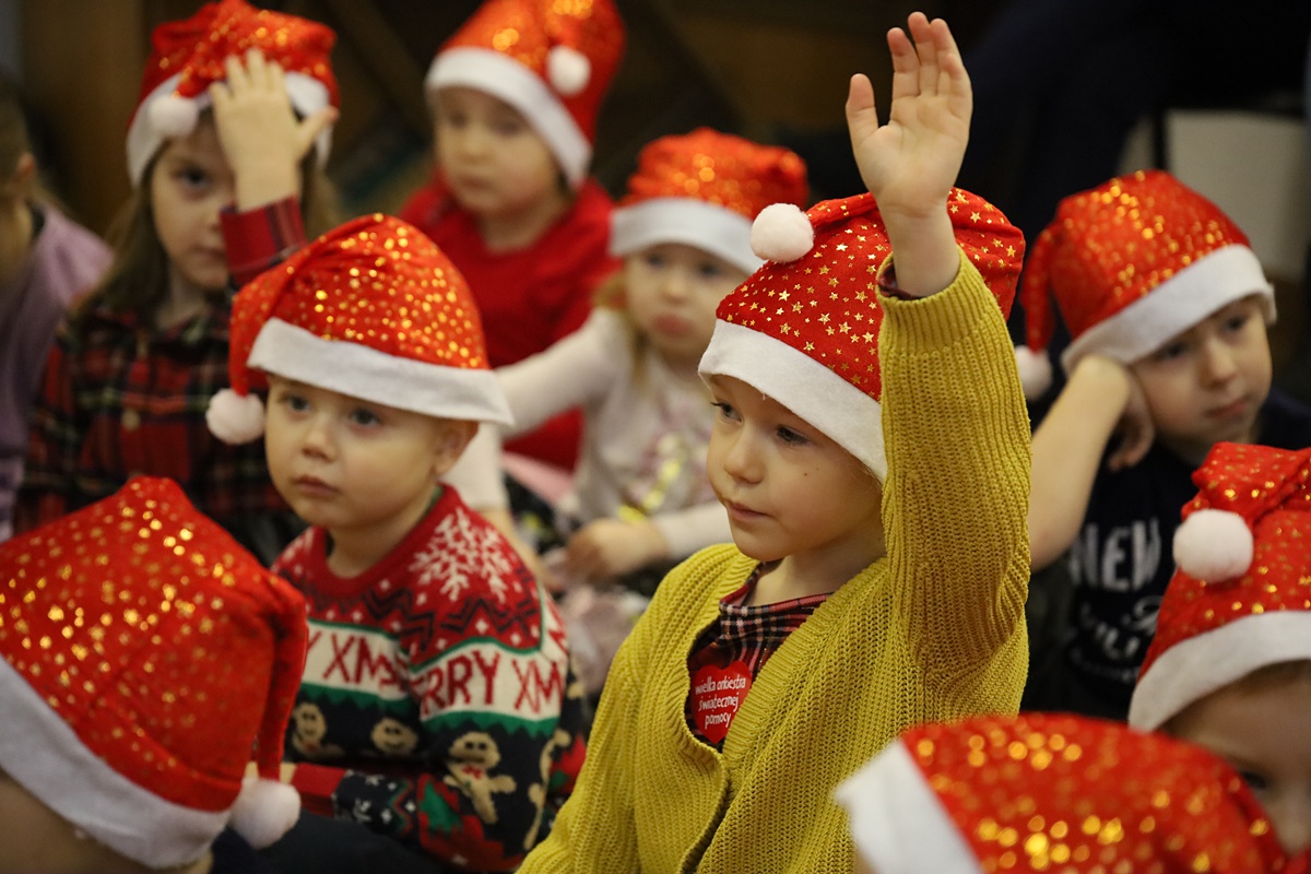Wyrzysk, dodano: 2025-12-05, godz.23:54W pierwszym tygodniu grudnia Bibliotekę Publiczną w Wyrzysku, w świątecznych nastrojach odwiedziły przedszkolaki z Falmierowa oraz Kosztowa. Roześmiane i pełne energii rozpoczęły spotkanie od śpiewania kolęd. Podczas wizyty nasi mali goście opowiadali o tradycjach świątecznych i potrawach jakie przygotowują z rodzicami w domu. Rozmarzone zdradzały sekrety o jakich prezentach marzą pod choinką i czy dotrzymują słowa o byciu grzecznym. Maluchy z ogromnym zainteresowaniem wysłuchały również świątecznych opowiadań czytanych przez bibliotekarza, na zakończenie których można było wyciągnąć jeden niezwykle ważny morał …. by umieć cieszyć się z małych gestów i wspólnych chwil wśród najbliższych. Tego dnia nie zabrakło także zagadek, zabaw ruchowych oraz pełnych energii tańców przy świątecznej muzyce.