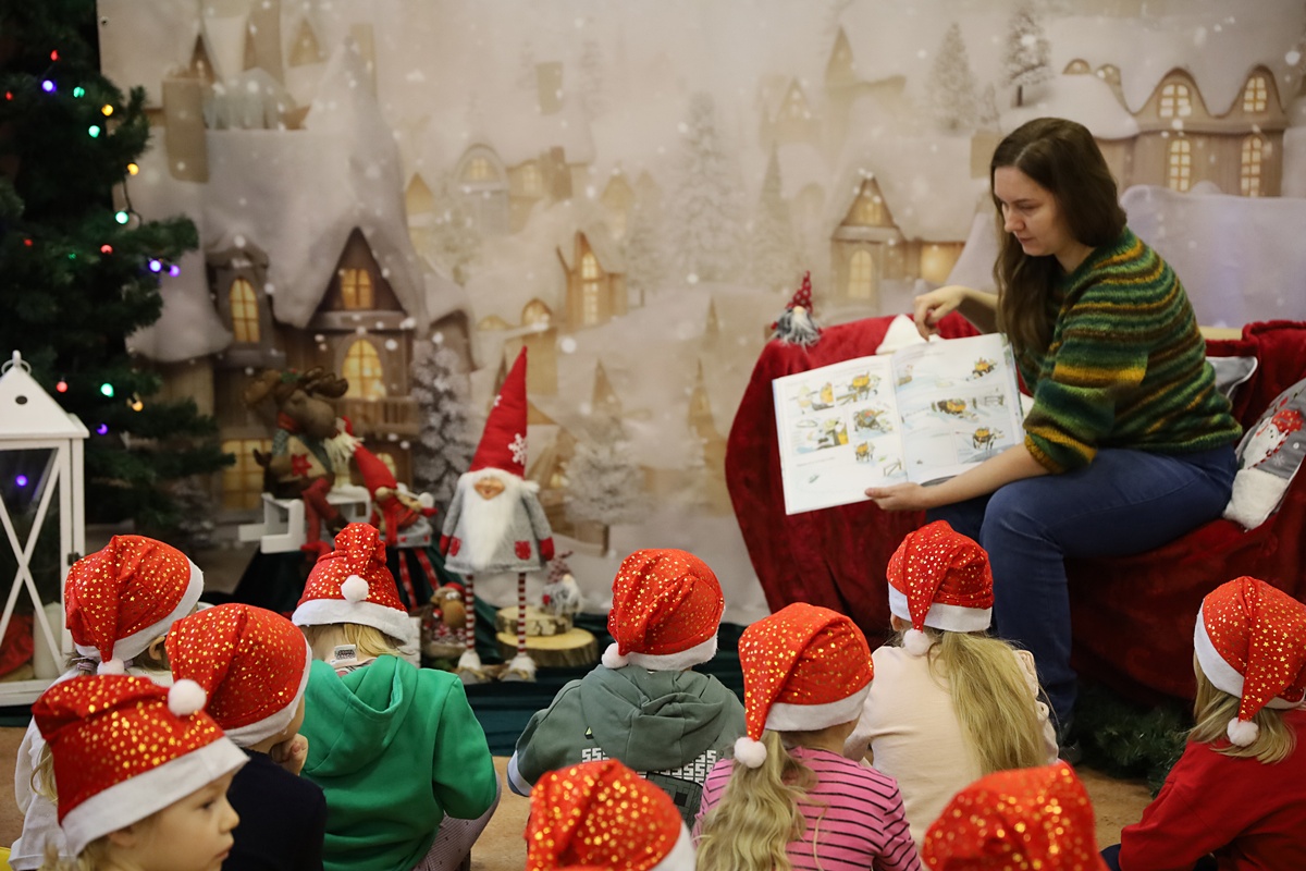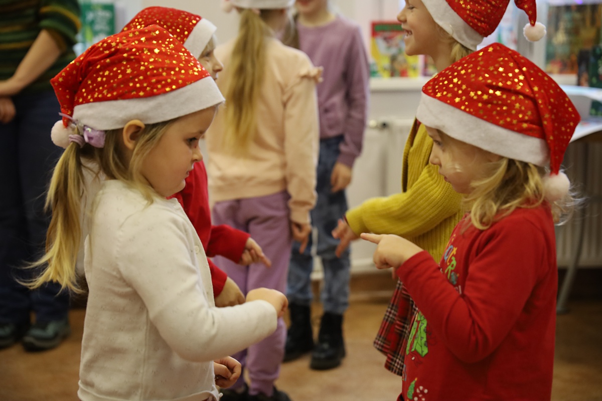 W pierwszym tygodniu grudnia Bibliotekę Publiczną w Wyrzysku, w świątecznych nastrojach odwiedziły przedszkolaki z Falmierowa oraz Kosztowa. Roześmiane i pełne energii rozpoczęły spotkanie od śpiewania kolęd. Podczas wizyty nasi mali goście opowiadali o tradycjach świątecznych i potrawach jakie przygotowują z rodzicami w domu. Rozmarzone zdradzały sekrety o jakich prezentach marzą pod choinką i czy dotrzymują słowa o byciu grzecznym. Maluchy z ogromnym zainteresowaniem wysłuchały również świątecznych opowiadań czytanych przez bibliotekarza, na zakończenie których można było wyciągnąć jeden niezwykle ważny morał …. by umieć cieszyć się z małych gestów i wspólnych chwil wśród najbliższych. Tego dnia nie zabrakło także zagadek, zabaw ruchowych oraz pełnych energii tańców przy świątecznej muzyce.