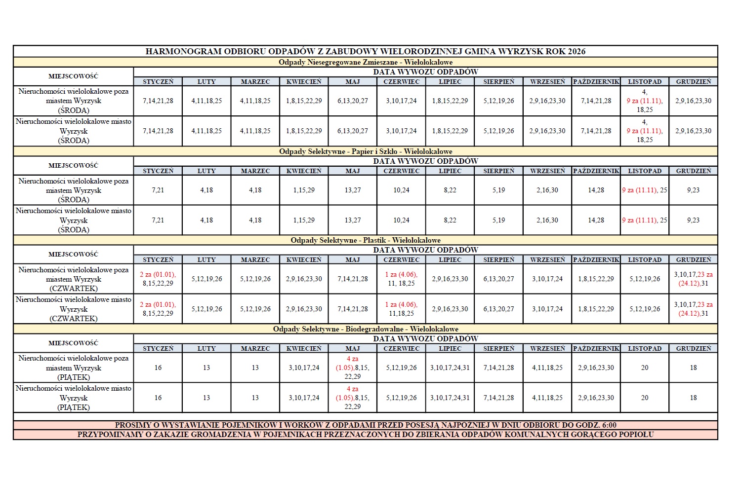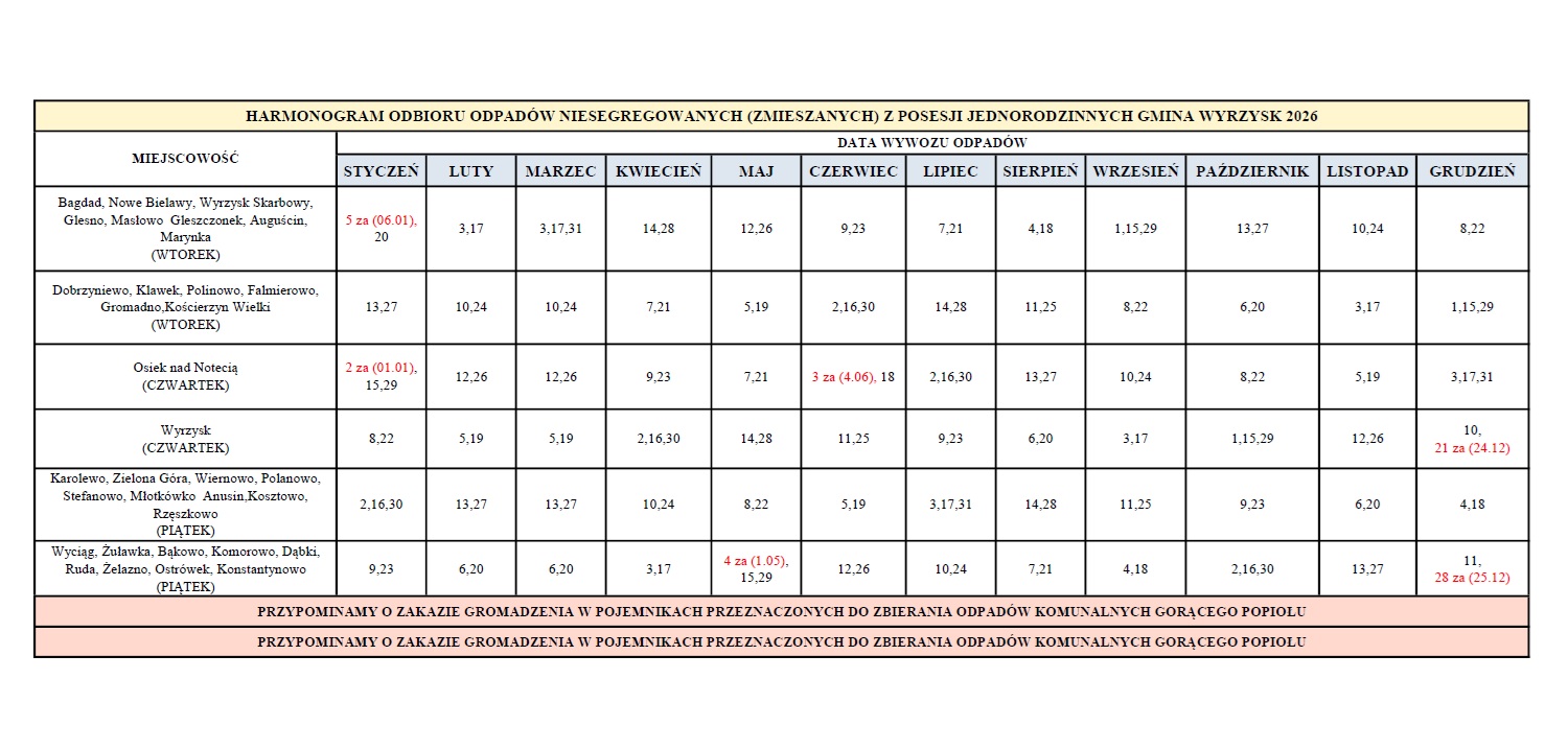 Zachęcamy do zapoznania się z harmonogramem odbioru odpadów na 2026 rok w Gminie Wyrzysk.