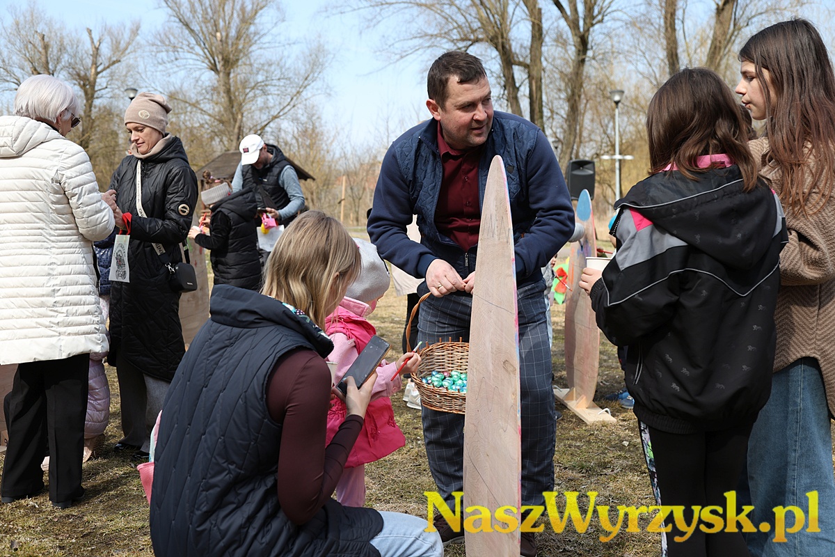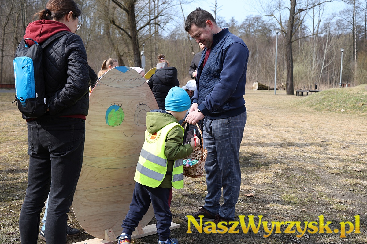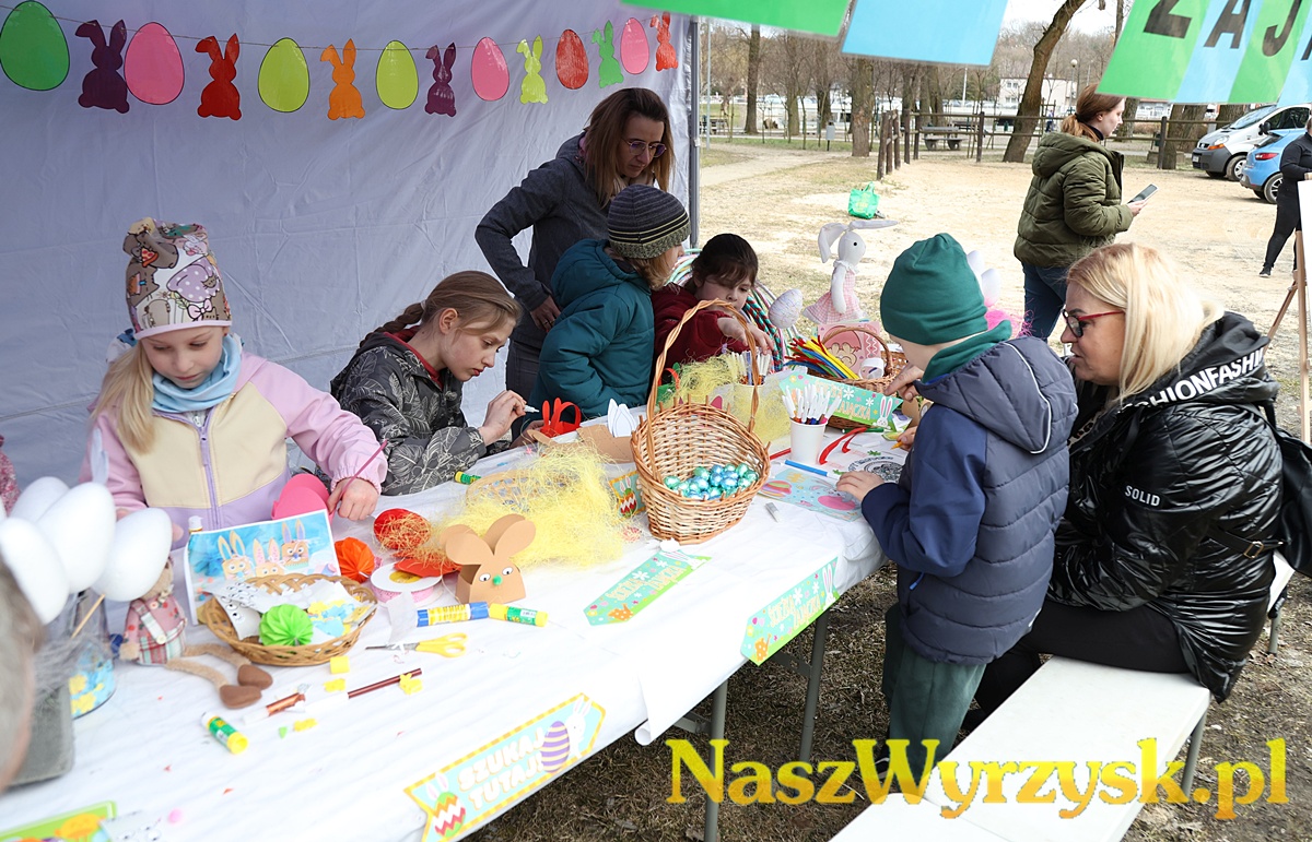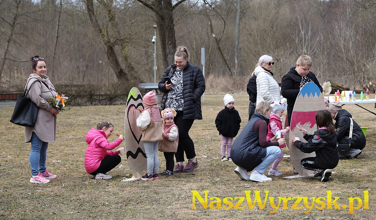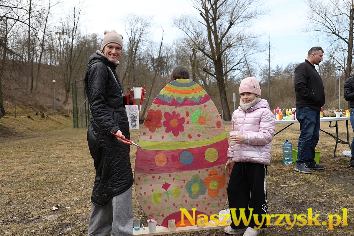 Na uczestników czekało wiele atrakcji - od kreatywnych zajęć wielkanocnych, przez zabawy ruchowe, aż po wspólne malowanie dużych, kolorowych jaj, które można już podziwiać przy wyrzyskim stawie.