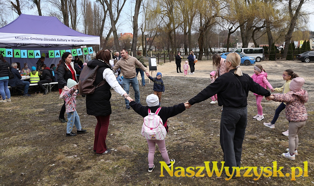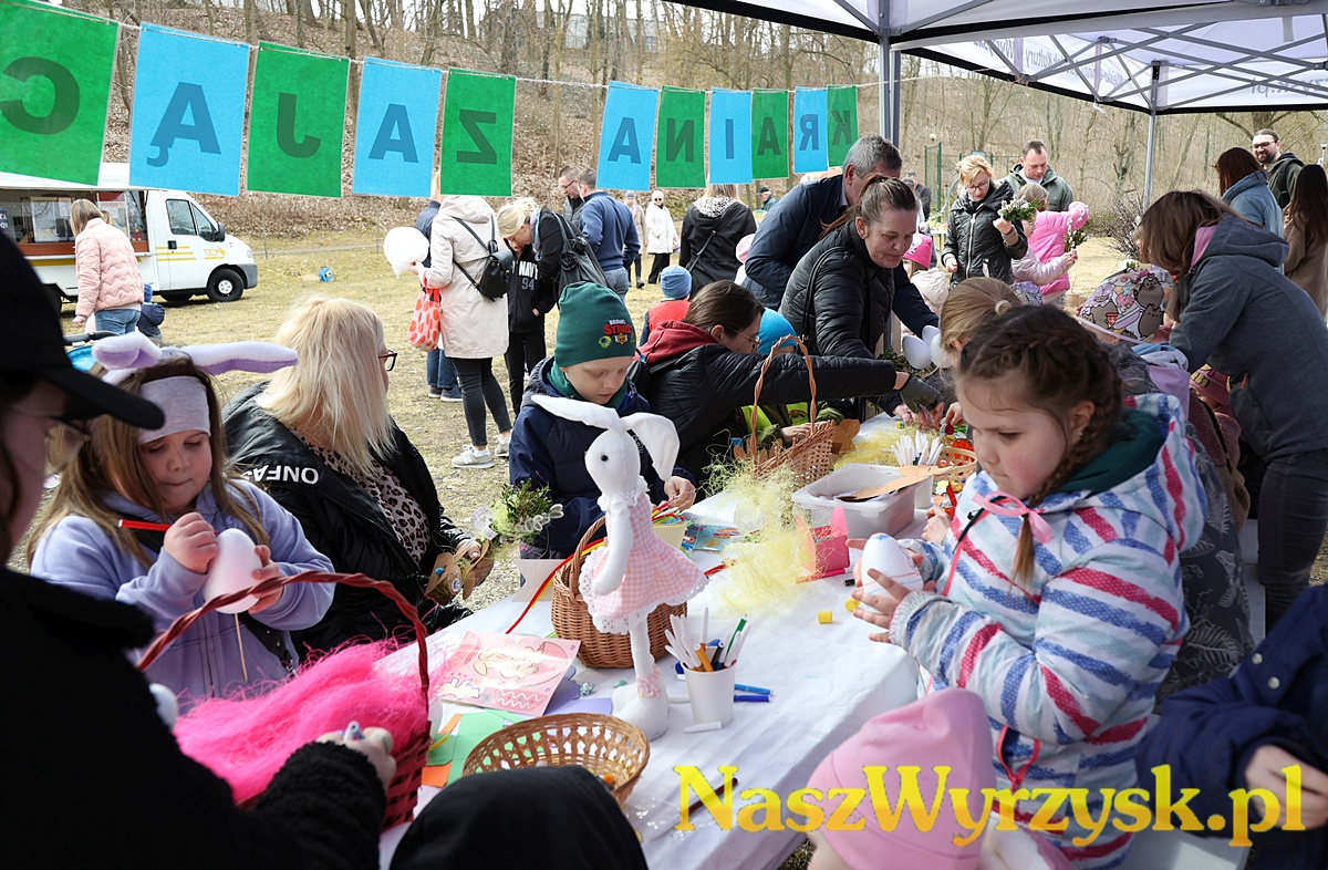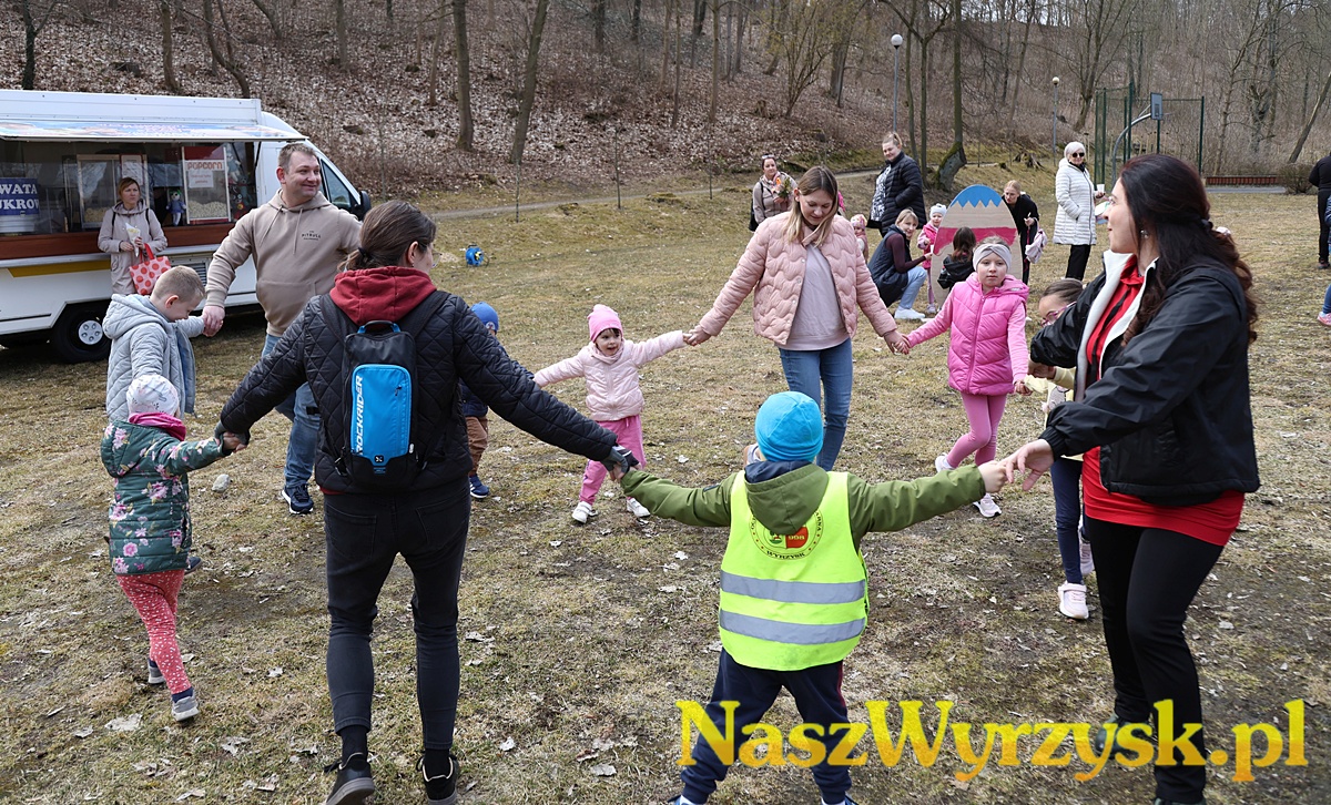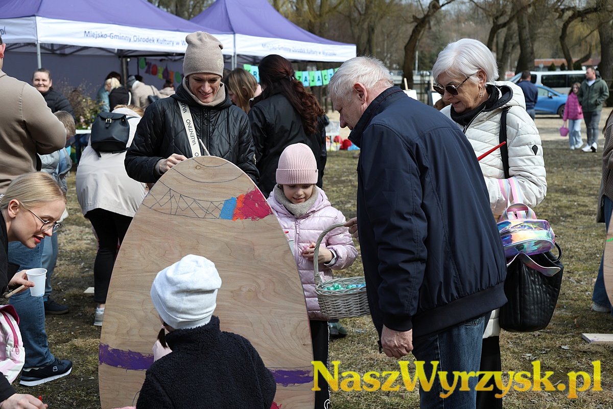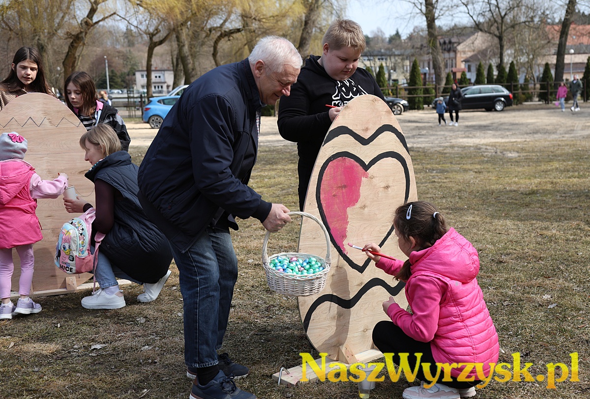 Na uczestników czekało wiele atrakcji - od kreatywnych zajęć wielkanocnych, przez zabawy ruchowe, aż po wspólne malowanie dużych, kolorowych jaj, które można już podziwiać przy wyrzyskim stawie.